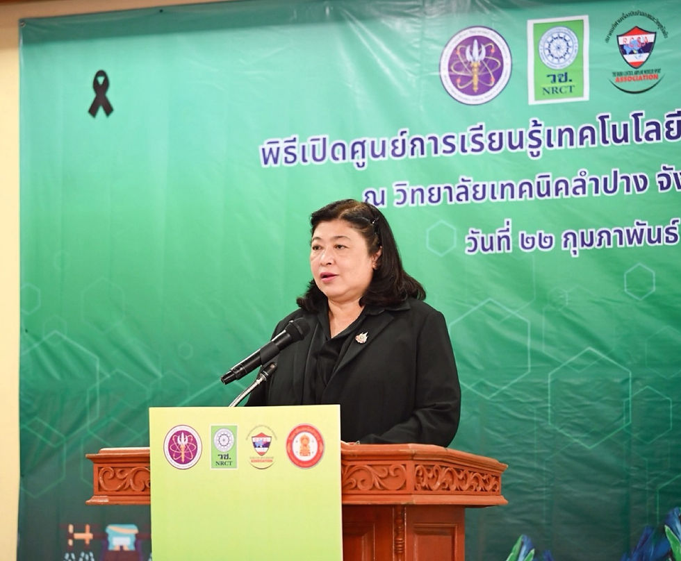วันที่ 22 กุมภาพันธ์ 2569 สำนักงานการวิจัยแห่งชาติ(วช.) กระทรวงการอุดมศึกษา วิทยาศาสตร์ วิจัยและนวัตกรรม ร่วมกับ สมาคมกีฬาเครื่องบินจำลองและวิทยุบังคับ จัด “พิธีเปิดศูนย์การเรียนรู้เทคโนโลยีโดรนด้านการเกษตร” โดย ดร.วิภารัตน์ ดีอ่อง ผู้อำนวยการสำนักงานการวิจัยแห่งชาติ เป็นประธานในพิธี พร้อมด้วย นายพิศิษฐ์ มิตรเกื้อกูล นายกสมาคมกีฬาเครื่องบินจำลองและวิทยุบังคับ กล่าวรายงาน, นายณัฐนนท์ ภู่อริยพงศ์ ผู้อำนวยการวิทยาลัยเทคนิคลำปาง กล่าวต้อนรับ, นางสาวศิรินทร์พร เดียวตระกูล รองผู้อำนวยการสำนักงานการวิจัยแห่งชาติ และผู้ทรงคุณวุฒิ วช. เข้าร่วมในพิธี ณ วิทยาลัยเทคนิคลำปาง จ.ลำปาง