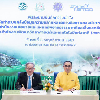เมื่อวันที่ 6 พฤศจิกายน 2567: สำนักงานนโยบายและแผนทรัพยากรธรรมชาติและสิ่งแวดล้อม (สผ.) โดยกองจัดการความหลากหลายทางชีวภาพ จัดพิธีลงนามบันทึกความเข้าใจการจัดทำระบบคลังข้อมูลความหลากหลายทางชีวภาพของประเทศไทย